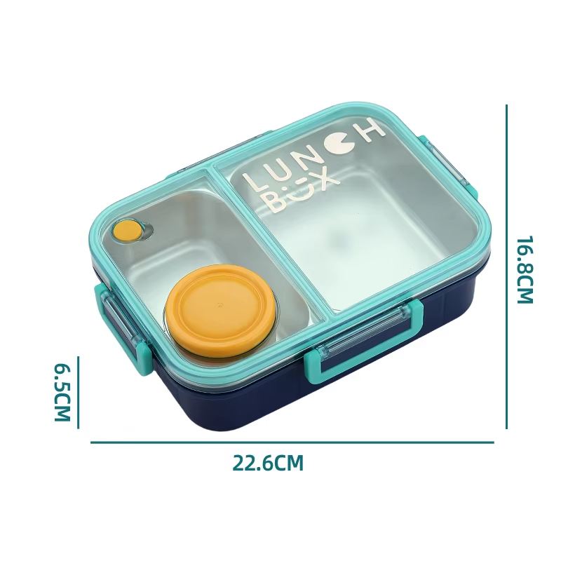 Laser anti-cross-flavor lunch box (3 compartments, 750ml stainless steel + 80ml external sauce cup + stainless steel spoon and chopsticks)